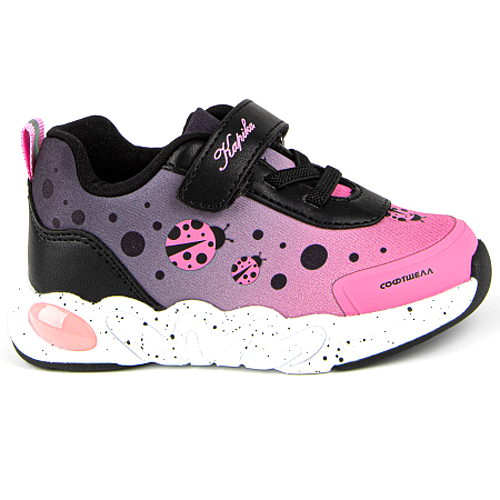 Эта модель детских кроссовок изготовлена из водоотталкивающего материала софтшелл, который обеспечивает надежную защиту ног ребенка в любых погодных условиях. Дизайн кроссовок продуман до мелочей, чтобы удовлетворить вкусы самых требовательных клиентов. Носочная часть кроссовок защищена, материал верха мягкий и приятный на ощупь, а легкая амортизирующая подошва обеспечивает комфорт при ходьбе. Кожаная антибактериальная стелька эффективно поглощает влагу, неприятные запахи и снижает нагрузку на ноги ребенка при ходьбе.
